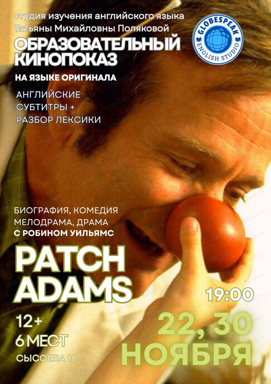Для изучающих и практикующих английский язык Globespeak Studio проводит образовательный показ фильма "Целитель Адамс" (1998г., 115 минут) с Робином Уильямс в главной роли (в оригинале с английскими субтитрами).