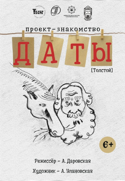 "Даты. Толстой" – первая часть из цикла к 200-летию со Дня рождения Л. Н. Толстого, история о жизни и творчестве великого русского писателя, которая представлена актрисой театра кукол не как учебник, а как увлекательное путешествие внутрь себя.