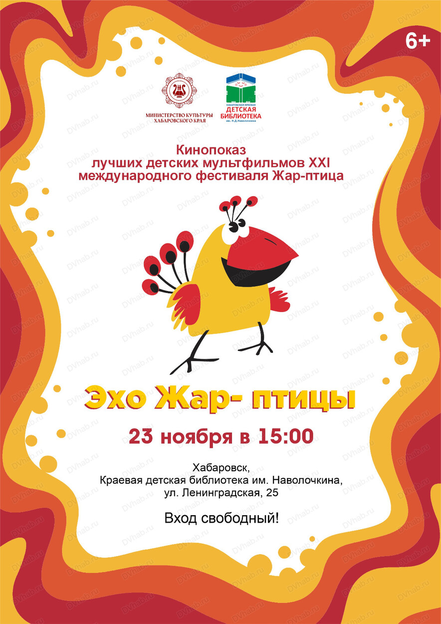 23 ноября 2025 года в 15:00 в Краевой детской библиотеке им. Н. Д. Наволочкина состоится кинопоказ лучших детских мультфильмов XXI Международного ‑фестиваля детского мультипликационного кино «Жар‑птица».