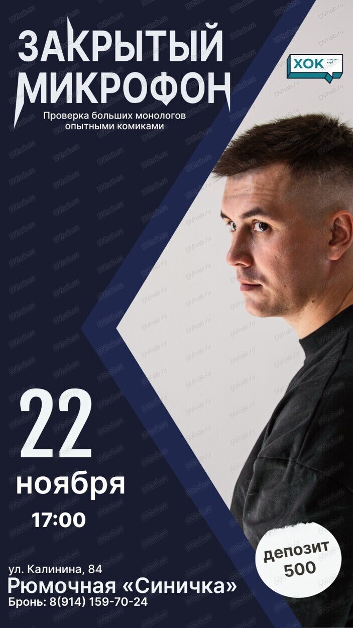 Закрытый микрофон - шоу, в котором опытные комики проверяют большие блоки нового материала, 4 комика на любую аудиторию.