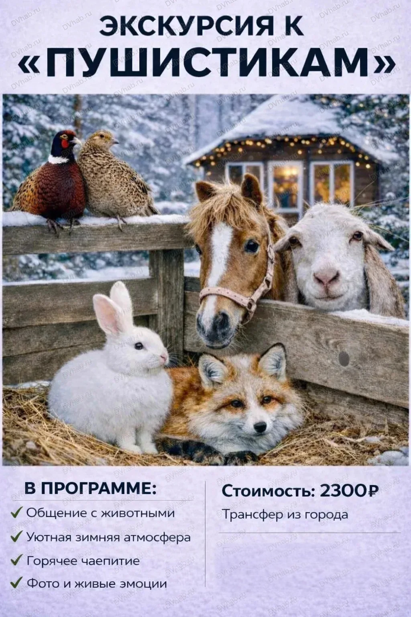 Отправляемся за город на мини-ферму, где вы сможете познакомиться с удивительными обитателями такими как: хитрые лисы, озорные еноты, пушистые кролики, грациозные лошади, очаровательные белки, элегантные лебеди и, конечно же, великолепные павлины.