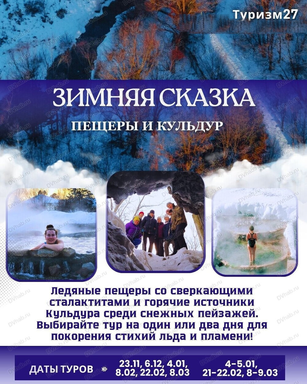 Снег хрустит под ногами, воздух пахнет хвоей, а в пещерах вас ждёт невероятный мир льда и тепла. Успейте увидеть эту зимнюю магию.