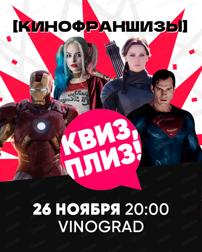 Квиз, плиз! [кинофраншизы] — это командная игра, отличный способ провести вечер с друзьями в уютном баре и получить новые позитивные впечатления. Огромное количество людей играет в "Квиз, плиз!" по всему миру, попробуйте и вы. Собирайте команду от 2 до 9 человек и регистрируйтесь.