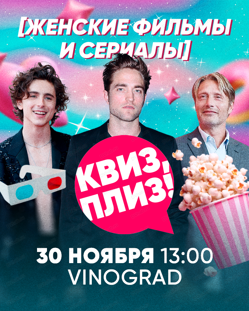 Квиз, плиз! — это командная игра, отличный способ провести вечер с друзьями в уютном баре и получить новые позитивные впечатления. В хорошей компании вопросы кажутся легче, а играть становится интереснее! Доверьтесь своему опыту просмотра и кайфуйте от кадров знакомых фильмов и сериалов.