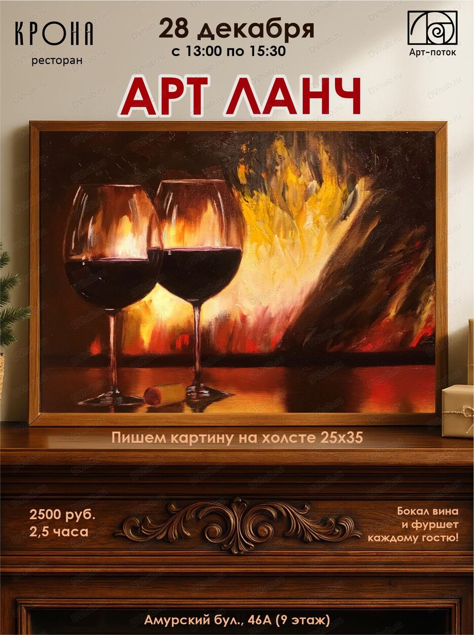 Все материалы предоставляются. Шикарная картина, бокал вина и фуршет каждому гостю. Не упустите такой возможности. Холст 25х35 см, краски выдаются.