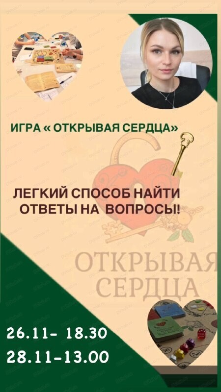 Вы зарегистрированы на событие «Психологическая игра "Открывая сердца"», на 26 ноября 18:30