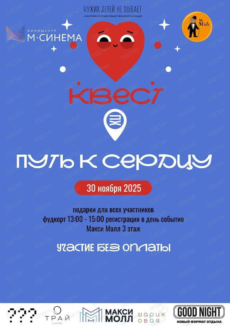 30 ноября в Хабаровске пройдёт интерактивный квест с анимацией, фотозонами, подарками и финальным розыгрышем.