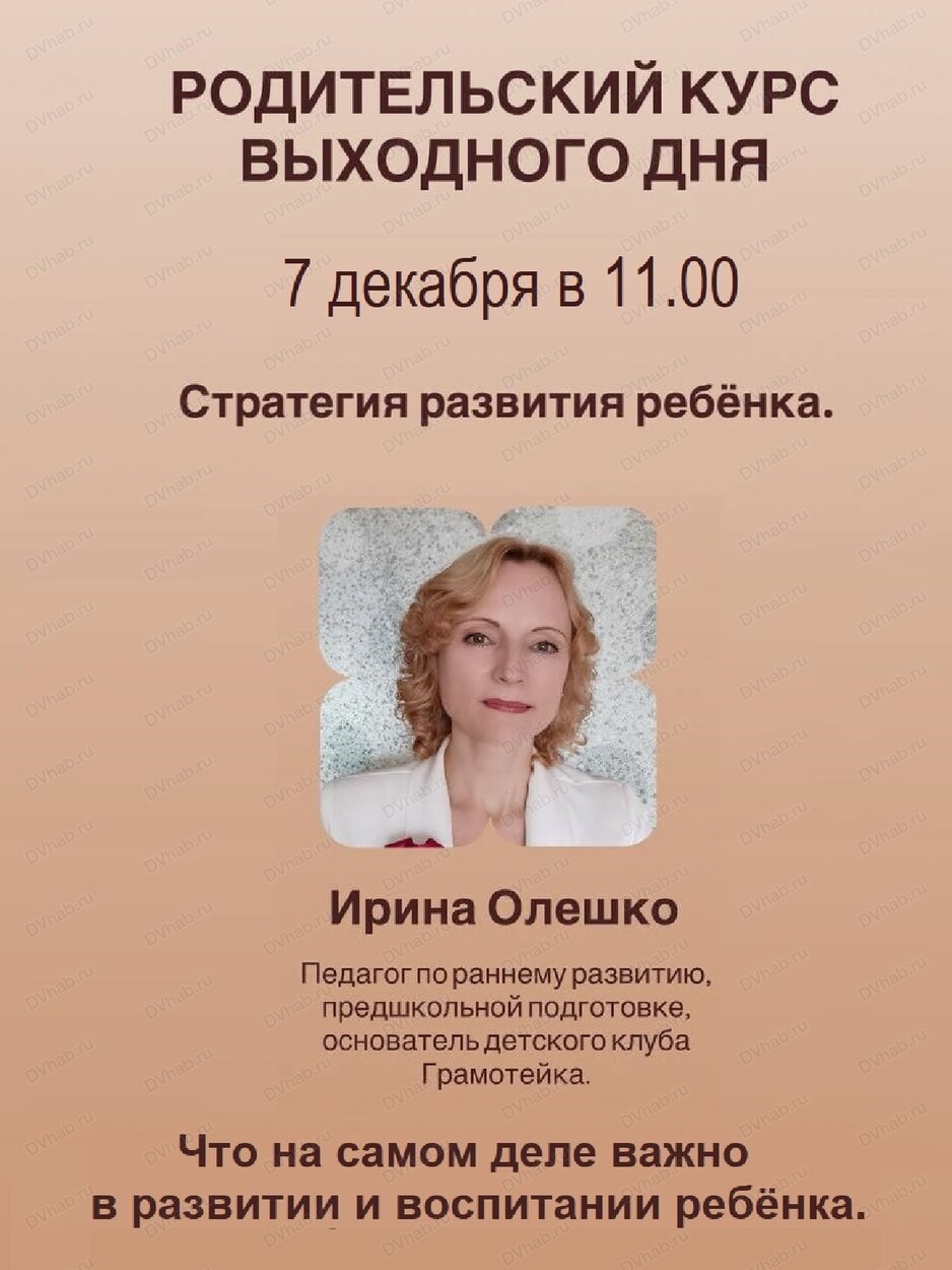 - 7 декабря. Стратегия развития ребёнка. Обсудим: как сформировать своё видение будущего ребёнка, как выстроить стратегию его развития и воспитания; что важно, а на что не стоит сильно обращать внимание.