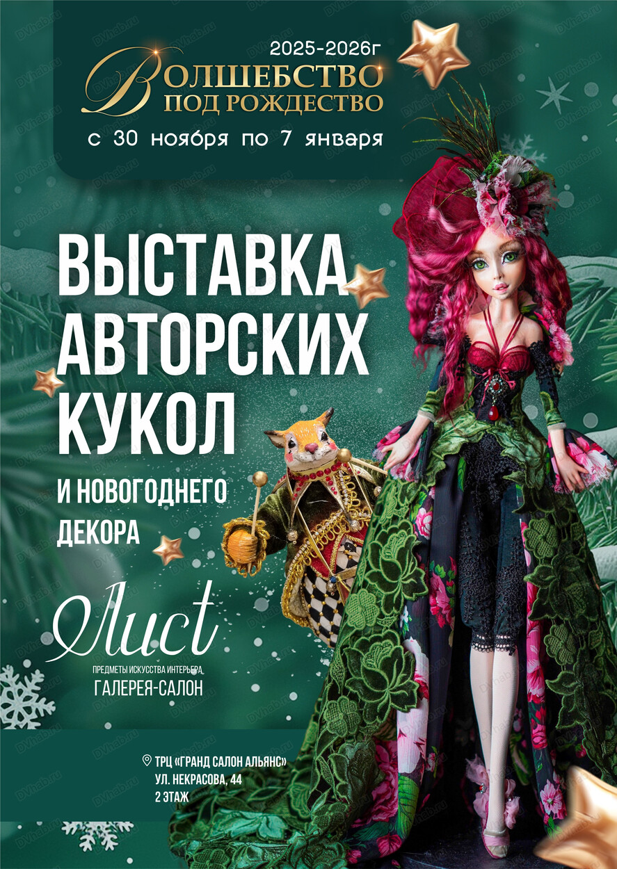 С 30 ноября по 7 января вас приглашают окунуться в уютную атмосферу рождественского чуда. На ежегодной выставке галерея — салон "Лист" собрала лучших мастеров авторской куклы.