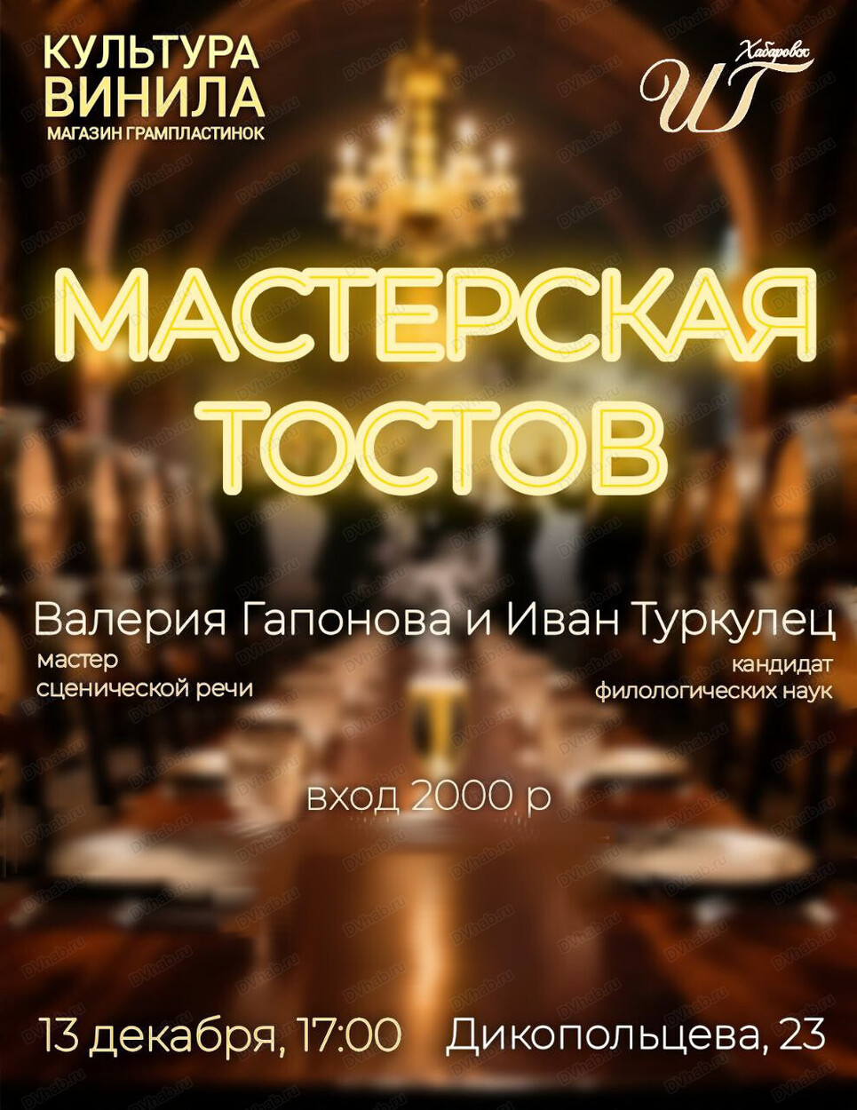 13 декабря в 17:00 "Мастерская тостов", Дикопольцева 23, магазин грампластинок "Культура винила".
