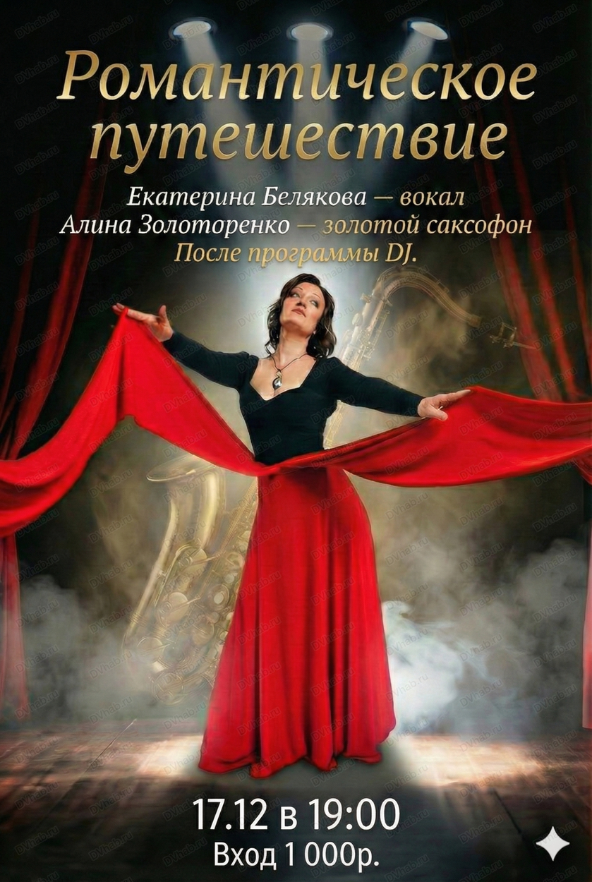 17 декабря в кафе "Вечера" пройдет концертная программа "Романтическое путешествие".