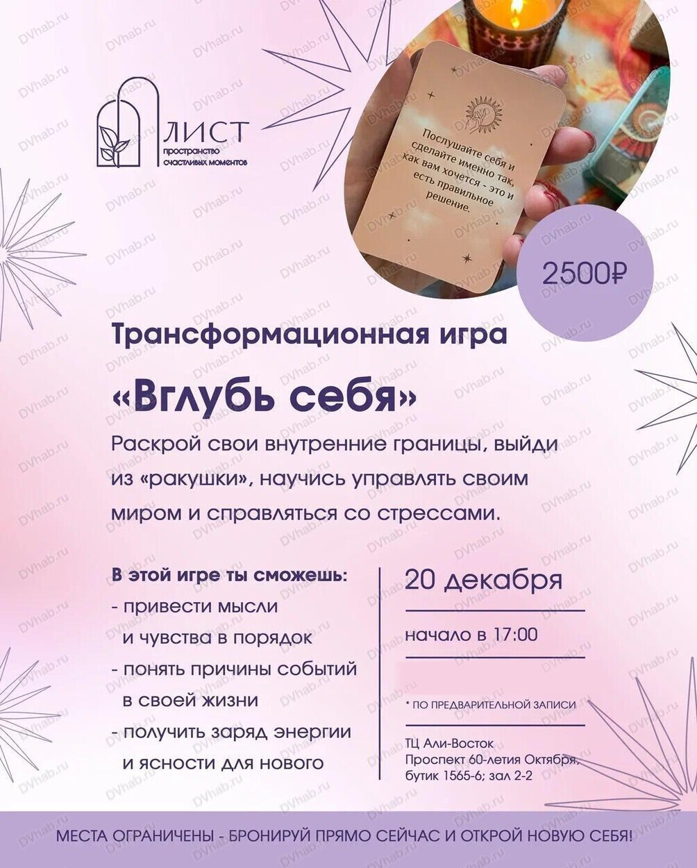 20 декабря в 17:00 в пространстве "Лист". Места ограничены — бронируй прямо сейчас и открой новую себя.