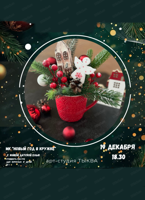 19 декабря в 18.30 вас приглашают создать атмосферную новогоднюю композицию в кружке. Новогодний декор и цвет композиции на выбор. Чудесный аромат живой датской ели + детали ручной работы, которые вы сделаете на мастер-классе сами = волшебный результат.