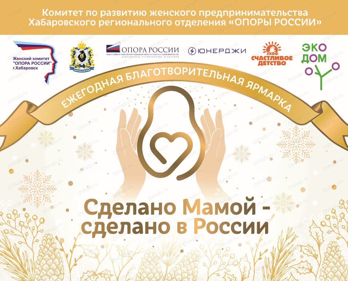 Комитет по развитию женского предпринимательства Хабаровского регионального отделения "ОПОРЫ России" приглашает посетить восьмую ежегодную благотворительную ярмарку "Сделано мамой — сделано в России".