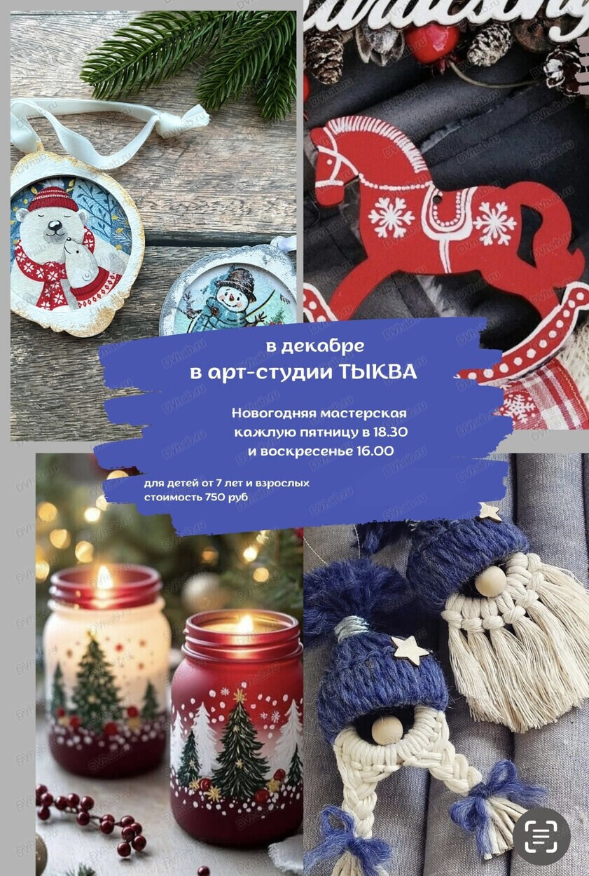 Каждую пятницу в 18.30 и в воскресенье 16.00 юных творцов от 7 лет ждут в новогоднюю мастерскую арт-студии "Тыква".
