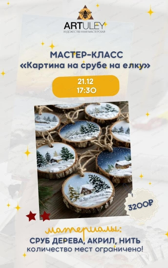 21 декабря в студии "Артулей" пройдет мастер-класс "Картина на срубе на ёлку".
