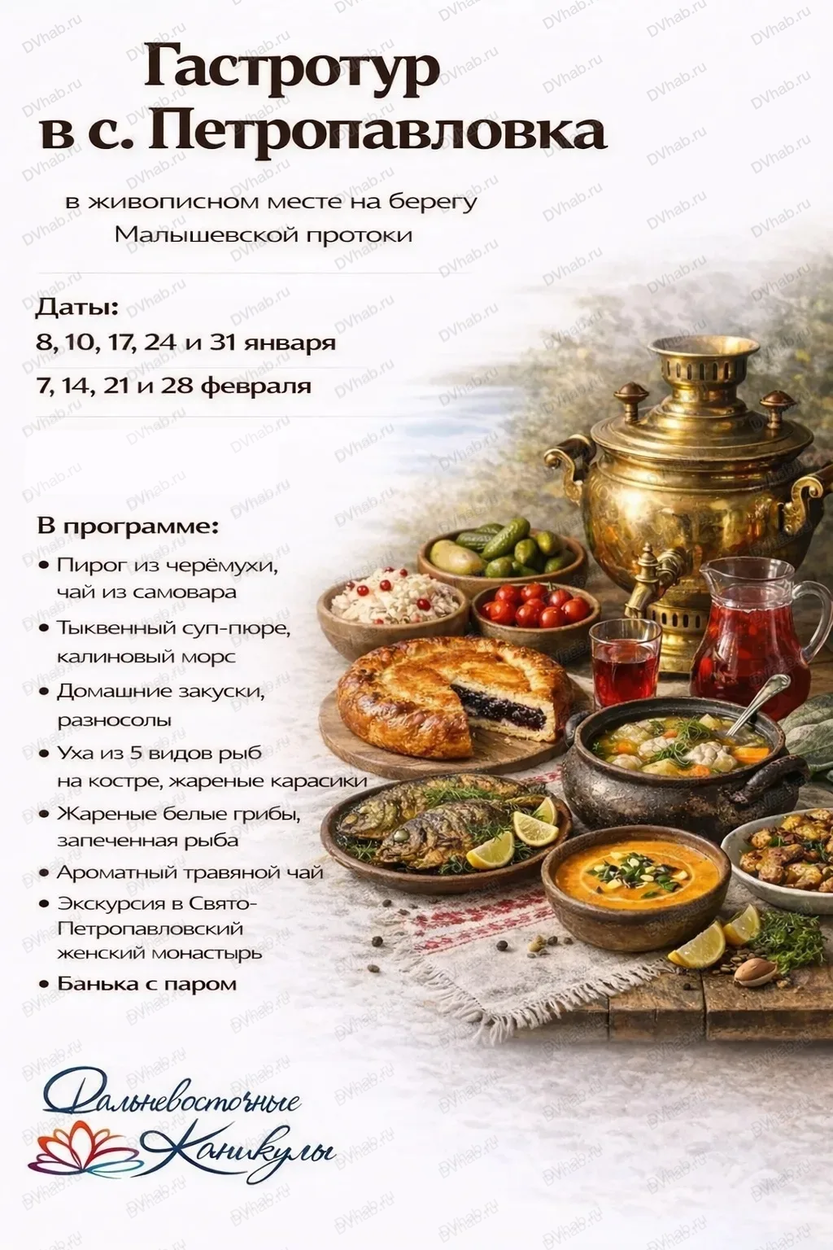 Итог дня: вы вернетесь отдохнувшими, полными сил, с яркими фотографиями и незабываемыми впечатлениями от природы и кухни Дальнего Востока.