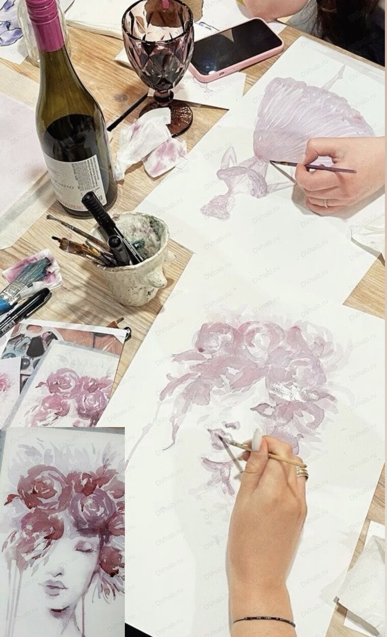 Арт-вечер по рисованию вином в "Винотеке".