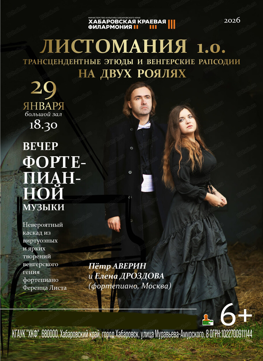 Невероятный каскад из виртуозных и ярких творений венгерского гения фортепиано - Ференца Листа прозвучат 29 января в концертном зале Хабаровской филармонии.