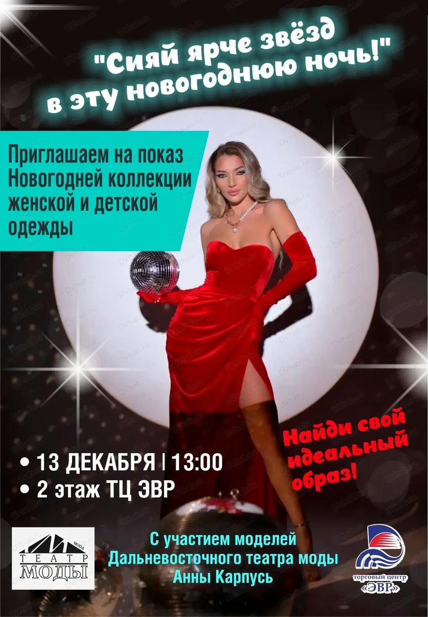 13 декабря в 13:00 в ТЦ "ЭВР" пройдет показ новогодней коллекции женской и детской одежды.