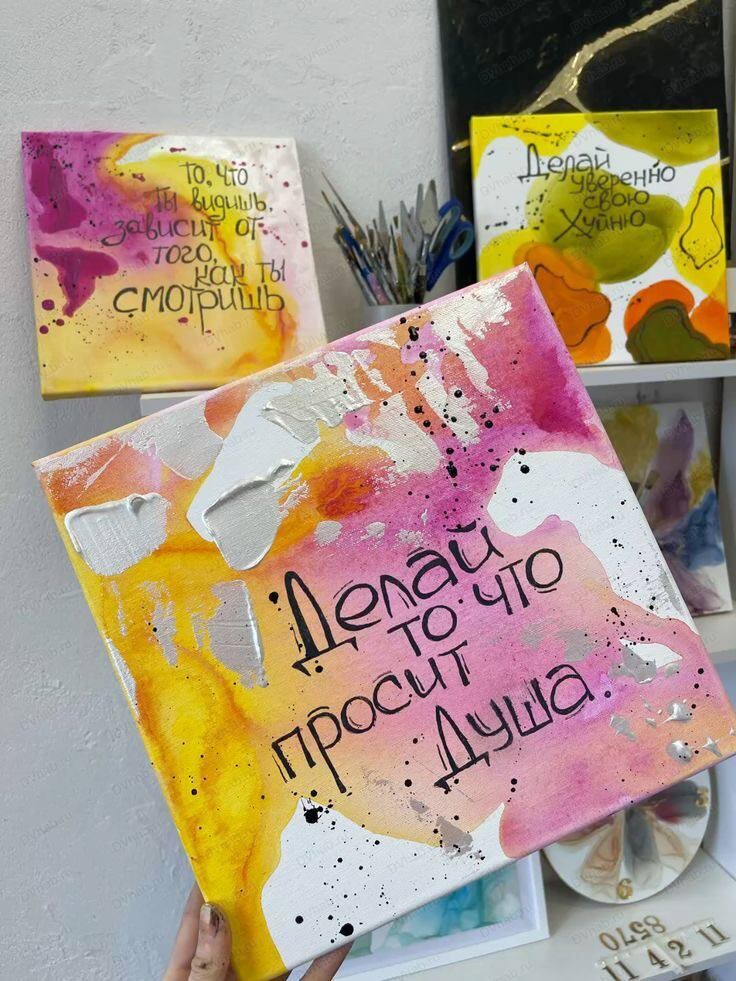 - Готовая картина 40×40 см на подрамнике — памятный результат вашего погружения
