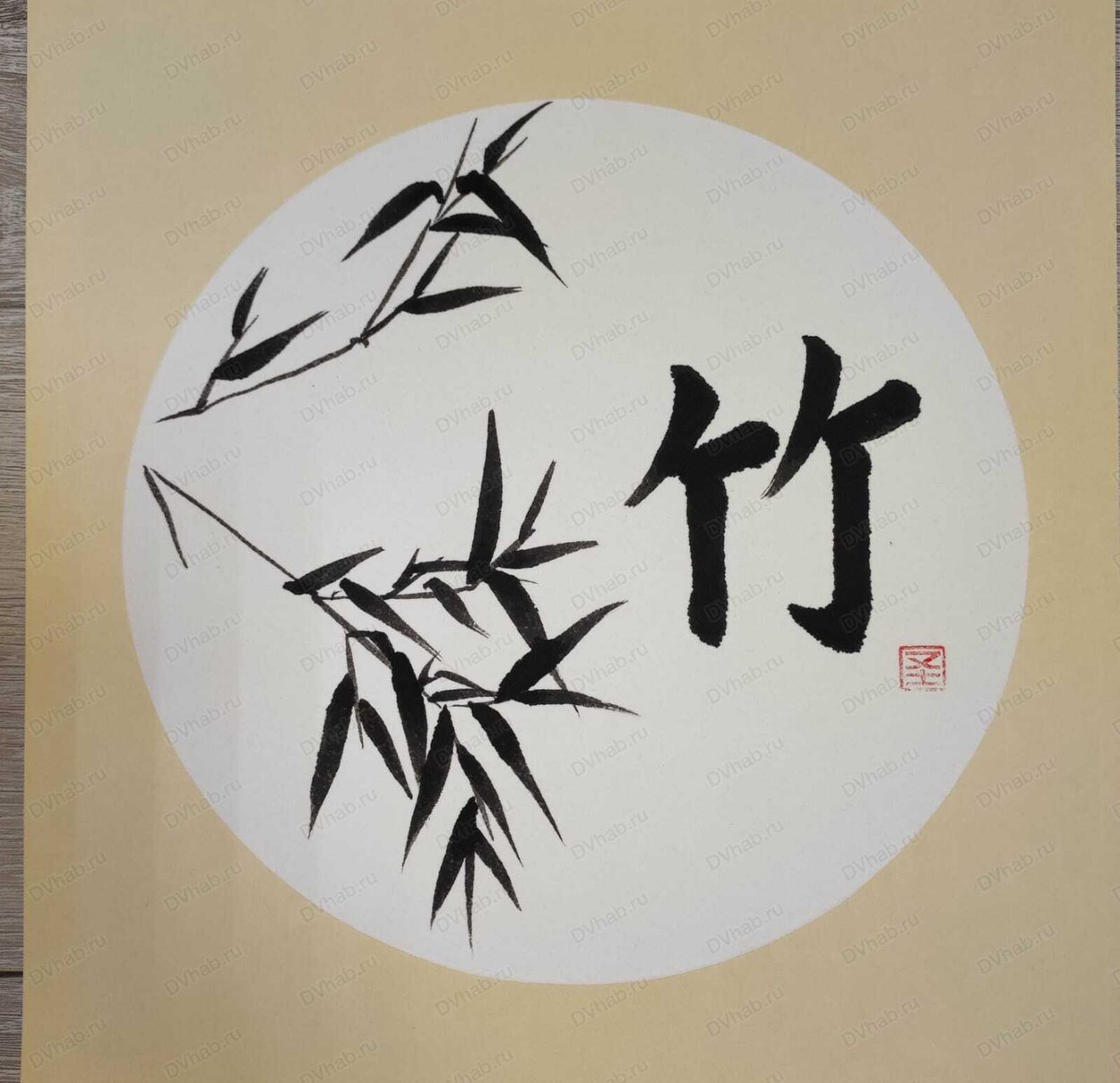 Творческая работа, которую вы выполните на мастер-классе — карточка с иероглифом 竹 (бамбук) и нарисуете веточку бамбука.