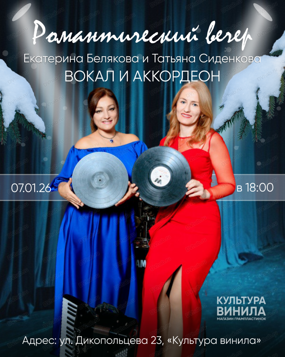 Вас ждёт вечер романтических мелодий — гармоничное сочетание аккордеона и вокала.