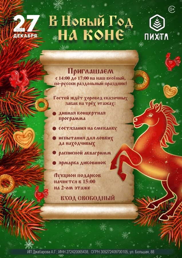 27 декабря с 14:00 до 17:00 гостей торгового центра "Пихта" ждёт хоровод сказочных забав на трёх этажах: