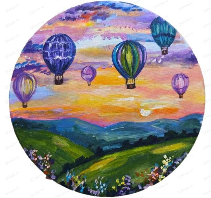 Вас ждет живопись акрилом на круглом холсте диаметром 30 см в уютной студии с бокалом шампанского и лёгкой закуской.