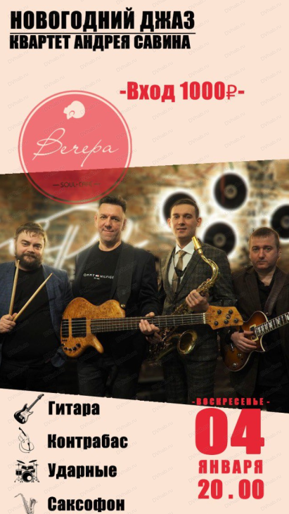 4 января в кафе "Вечера" выступит квартет Андрея Савина.