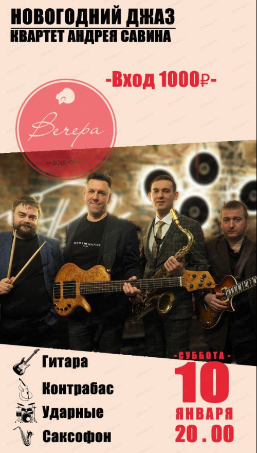4 января в кафе "Вечера" выступит квартет Андрея Савина.
