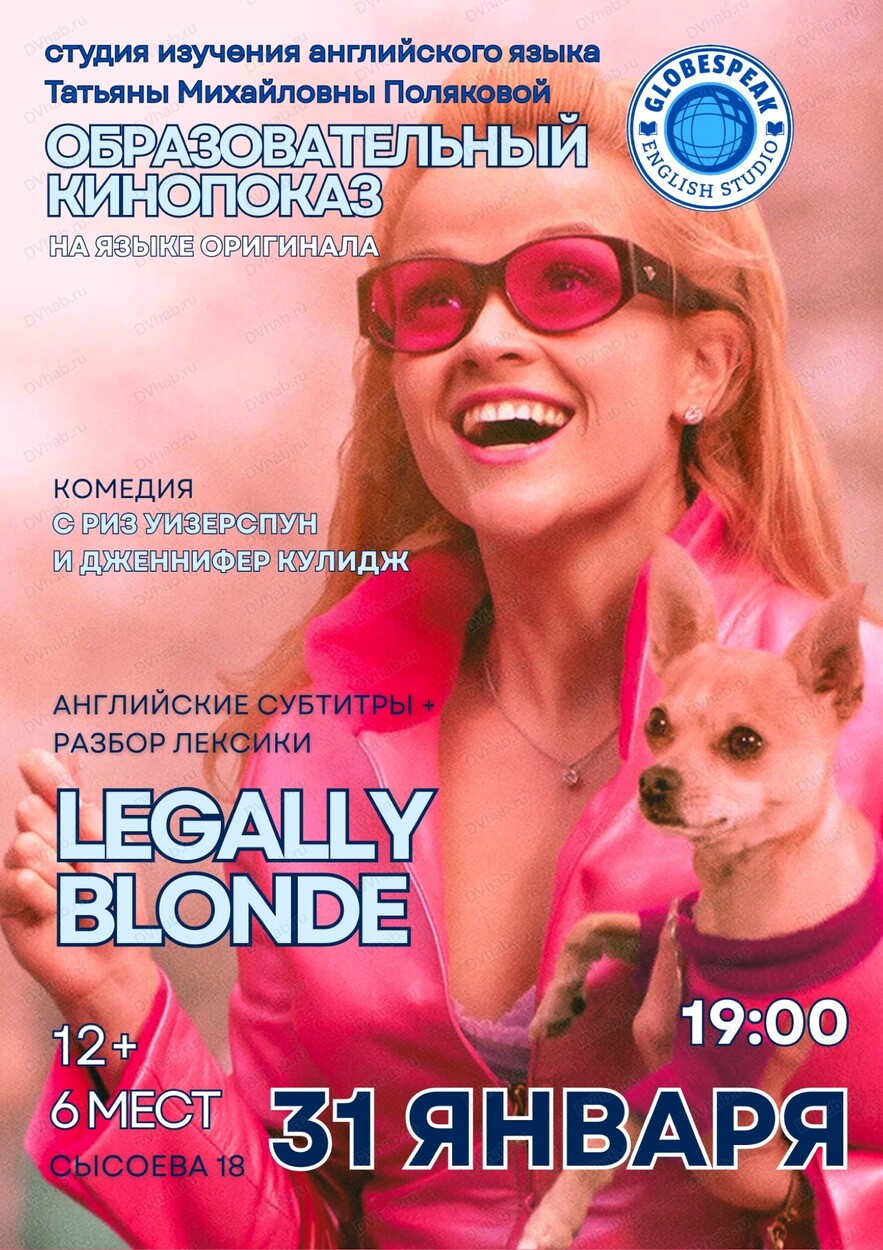 Для изучающих и практикующих английский язык Globespeak Studio проводит образовательный показ фильма "Блондинка в законе" (2001., 12+) с Риз Уизерспун и Дженифер Кулидж в главных ролях (в оригинале с английскими субтитрами). Этот фильм уже стал "классикой", а образ главной героини стал культовым, его копировали многие знаменитости, включая Ким Кардашьян.