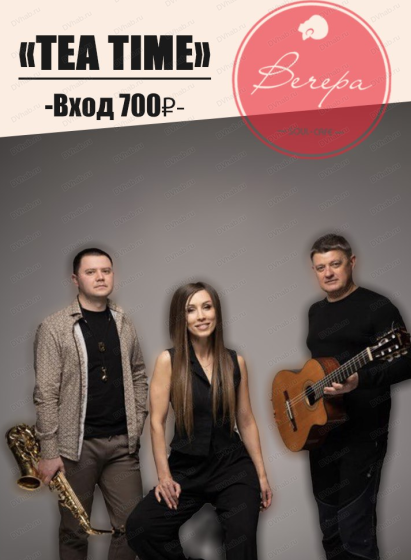 Вас приглашают на ужин под звуки саксофона, фортепиано и прекрасного вокала в исполнении трио Tea Time. Любовь Назарова исполнит всем вам знакомые композиции, а виртуозная игра Алишера на саксофоне и Александра на фортепиано не оставит равнодушным ни одного гостя.
