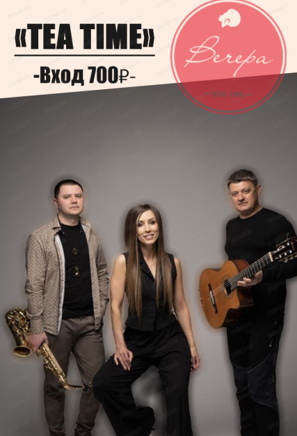 Вас приглашают на ужин под звуки саксофона, фортепиано и прекрасного вокала в исполнении трио Tea Time. Любовь Назарова исполнит всем вам знакомые композиции, а виртуозная игра Алишера на саксофоне и Александра на фортепиано не оставит равнодушным ни одного гостя.