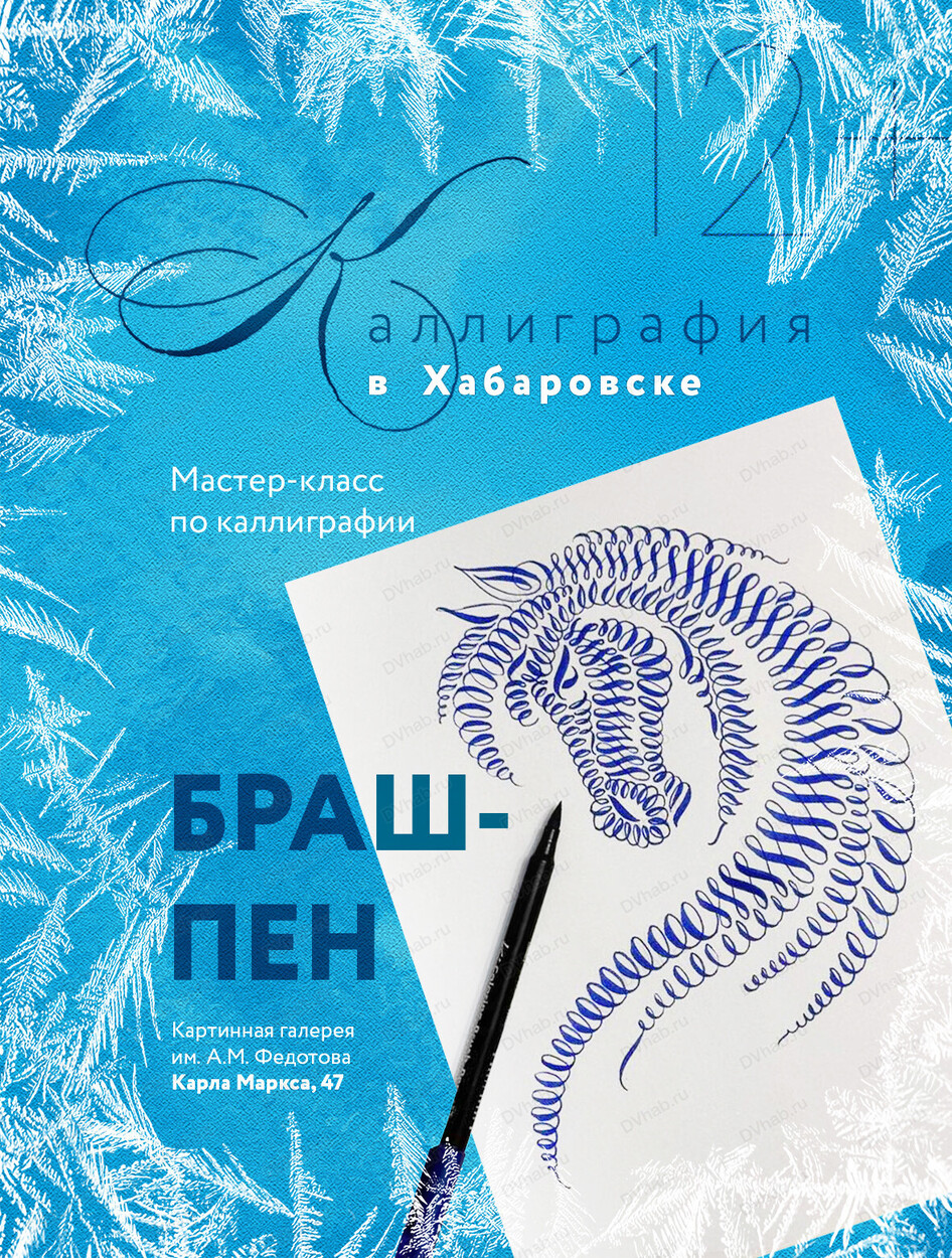 Мастер-класс по каллиграфии кистью (брашпен) в рамках выставки "Каллиграфия в Хабаровске".