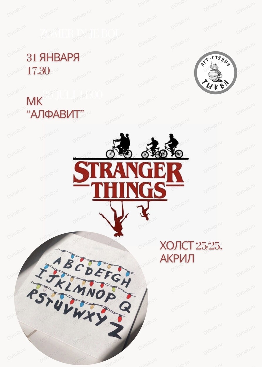 Вас ждет мастер-класс по мотивам сериала. Холст 25х25, акрил предоставляются. Продолжительность 1,30 мин.