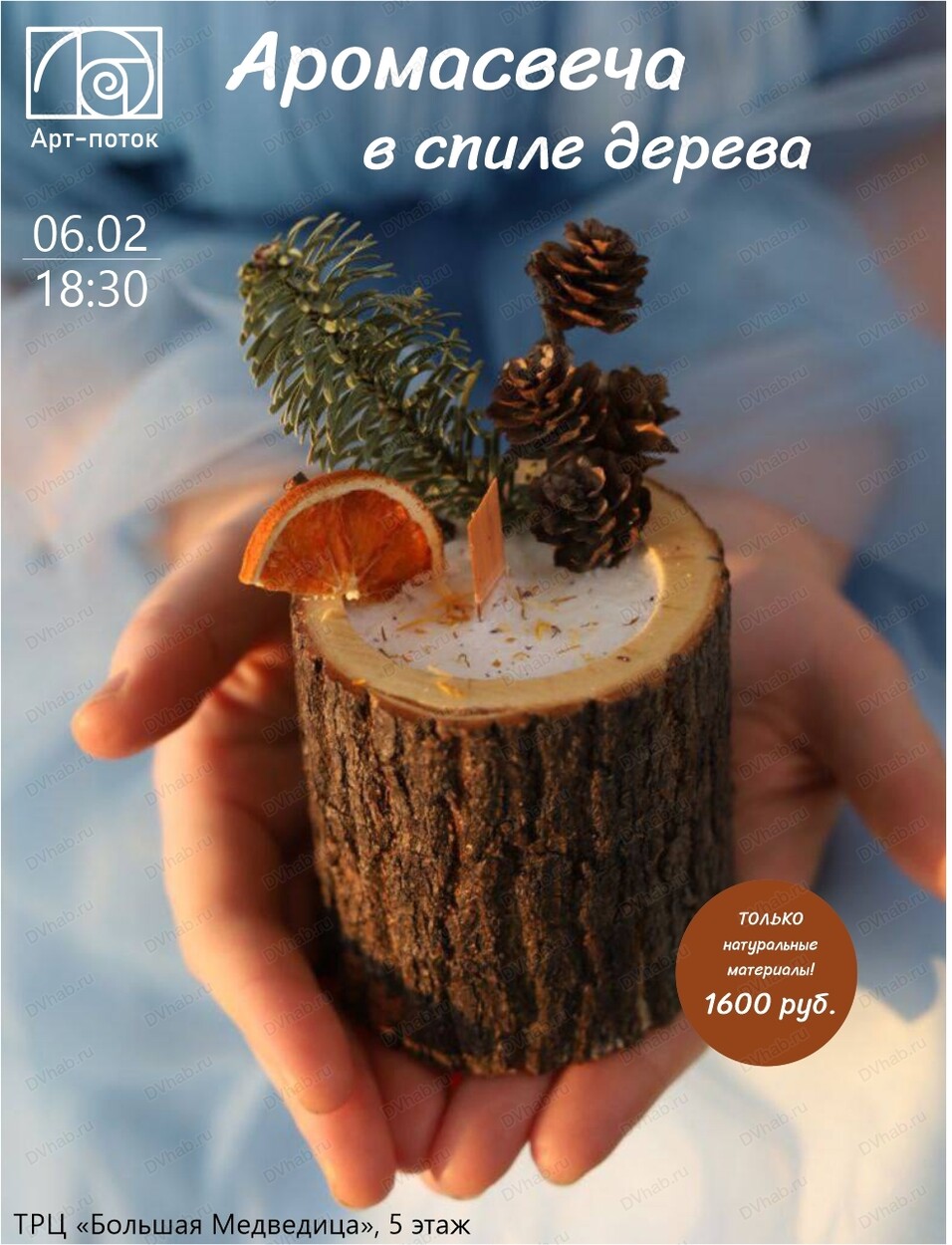 Творческая студия "Арт-поток" приглашает на мастер-класс "Аромасвеча в спиле дерева".