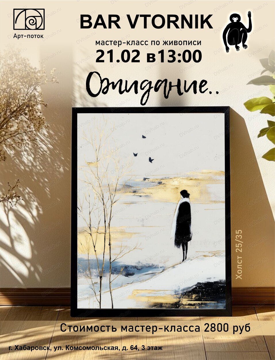 Творческое пространство "Арт-поток" и уютный бар "Вторник" приглашают вас на мастер-классы по живописи.