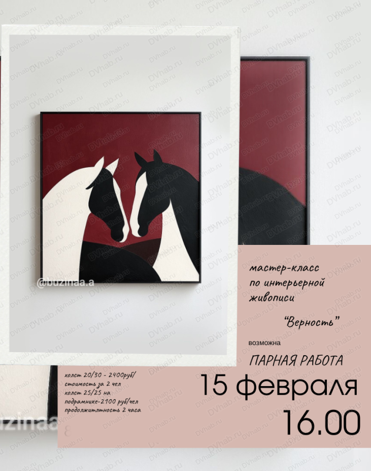 Вы зарегистрированы на событие «Мастер-класс по интерьерной живописи "Верность"», на 15 февраля 16:00