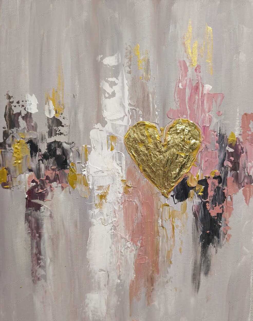 Эту композицию можно выполнить в любой цветовой гамме. Нарисовать сердце любого размера и расположить его на просторах холста 30*40 см.