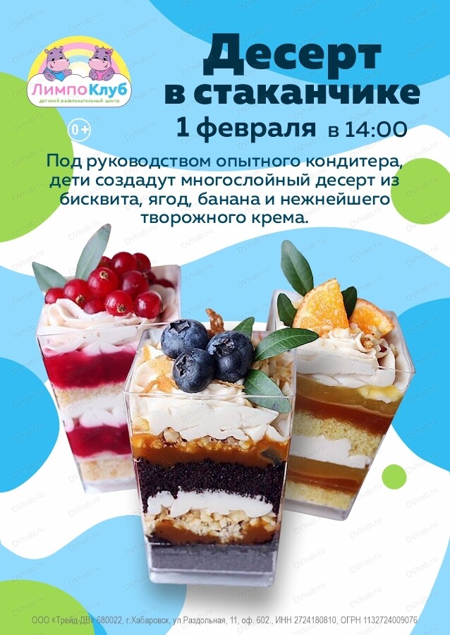 Мастер-класс "Десерт в стаканчике" в детском развлекательном центре "ЛимпоКлуб".