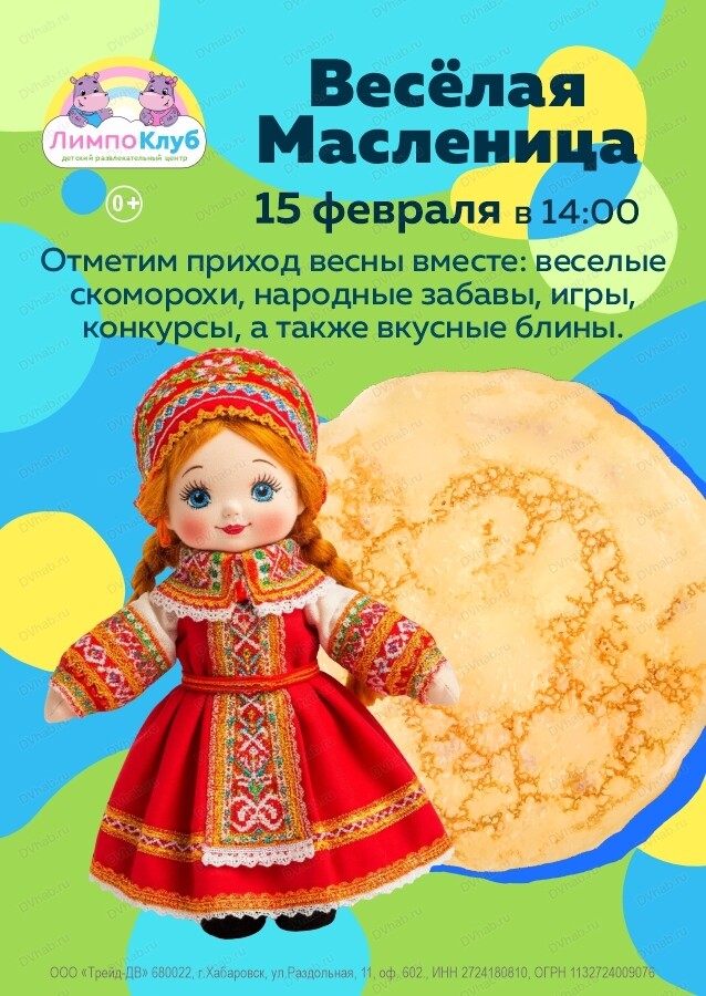 Праздничная программа "Весёлая Масленица" в детском развлекательном центре "ЛимпоКлуб".
