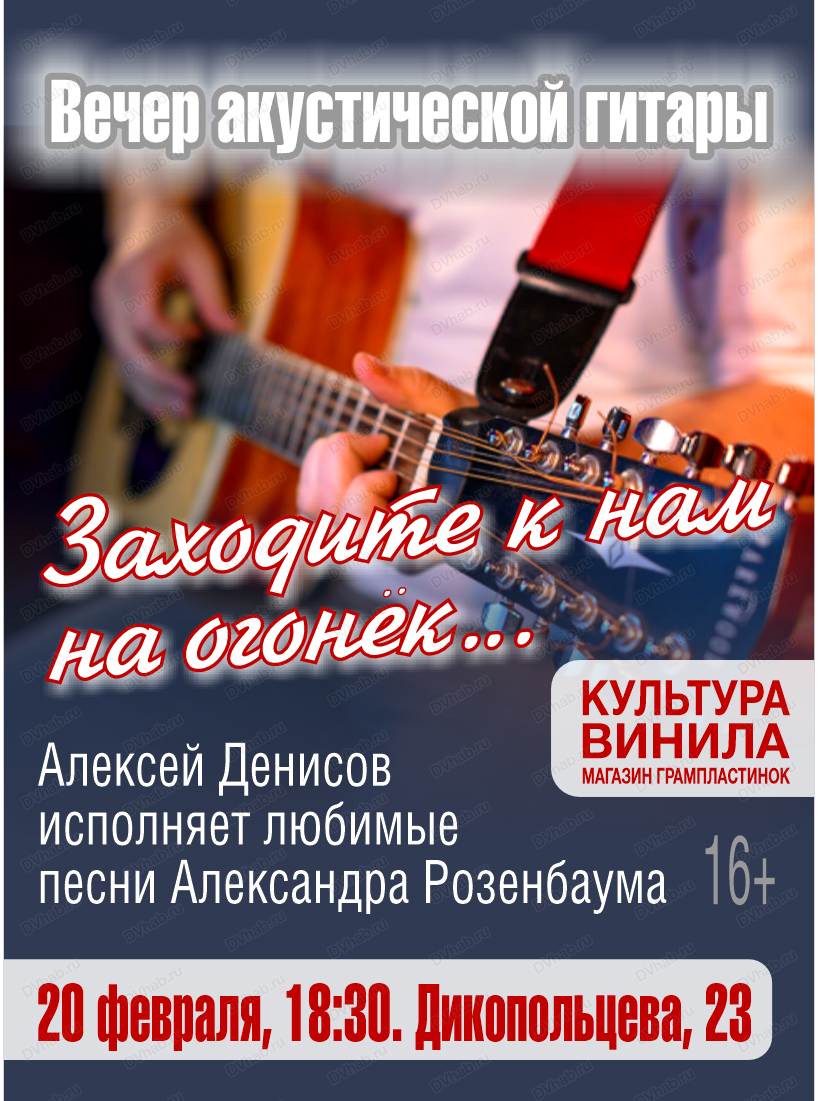 Вы зарегистрированы на событие «Вечер акустической гитары "Заходите к нам на огонёк…"», на 20 февраля 18:30