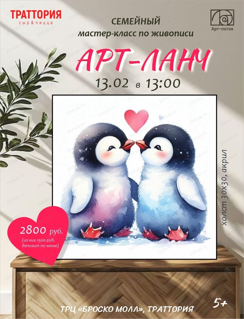 Творческая студия "Арт-поток" приглашает на семейный мастер-класс на арт-ланч в ресторан "Траттория" в ТЦ "Броско Молл".