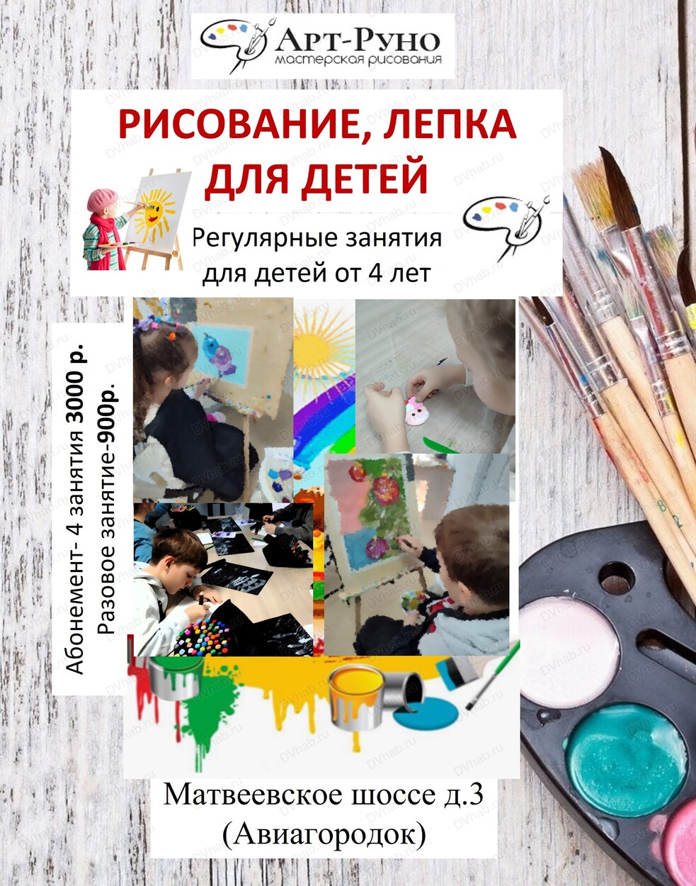 Студия "Арт-Руно" проводит дополнительный набор детей от 4 лет на регулярные занятия по рисованию, лепке, скетчингу и декоративно-приклатному творчеству.