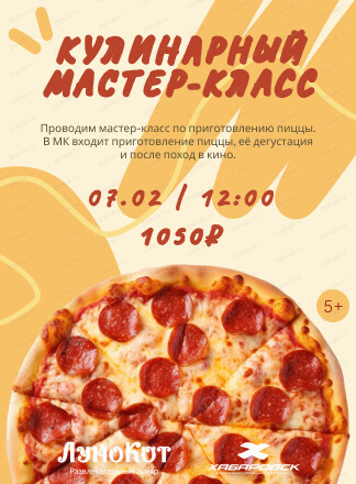 7 февраля в 12:00 юные повара будут готовить настоящую пиццу своими руками: добавим любимые ингредиенты, создадим идеальную начинку и устроим вкусную дегустацию.