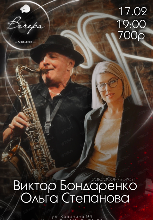 17 февраля в кафе "Вечера" выступит Виктор Бондаренко и Ольга Степанова.