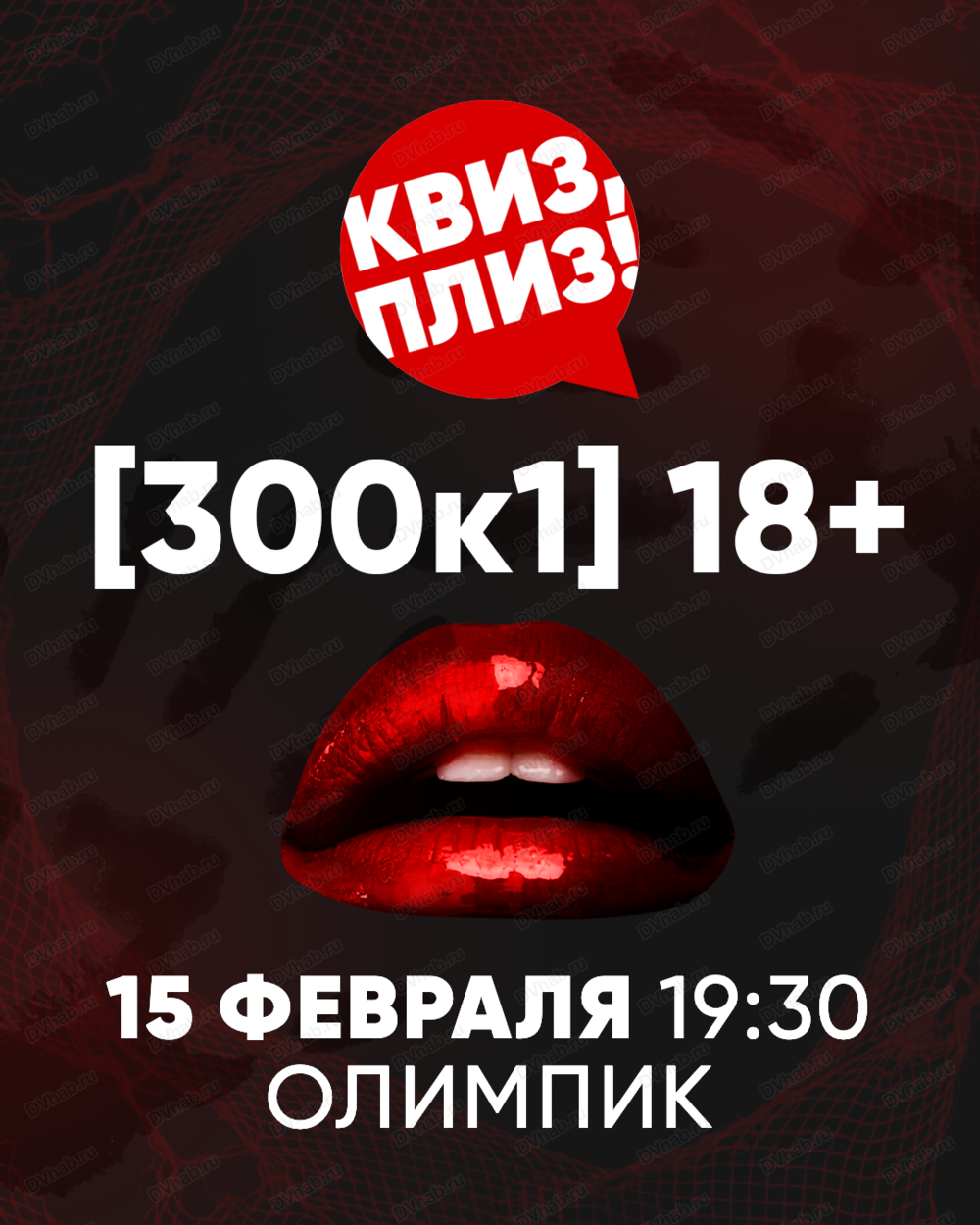 [300к1] 18+ — это формат игры Квиз, плиз!, где вы угадываете самые популярные ответы на вопросы для взрослых. Контент с перчинкой, строго 18+. Собирайте команду от 2 до 9 человек и регистрируйтесь.
