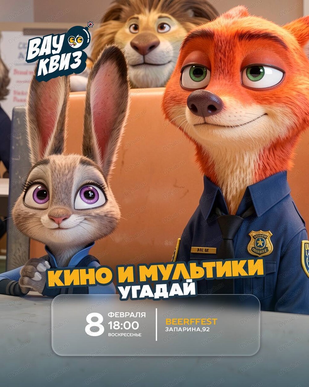 Вы зарегистрированы на событие «Интеллектуальная игра "Вау квиз". Кино и мультики», на 8 февраля 18:00