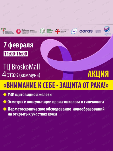 7 февраля с 11:00 до 16:00 в BroskoMall пройдет профилактическая акция "Внимание к себе – защита от рака!".